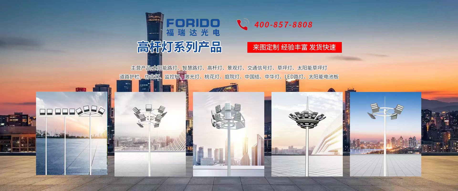 揚(yáng)州福瑞達(dá)光電科技有限公司位于淮左名都?xì)v史文化名城、中國路燈制造基地?fù)P州市北郊菱塘工業(yè)園,公司占地面積76000平方米,注冊資金10518萬元,擁有高級技術(shù)嫻熟的員工280多人,擁有大型折彎機(jī)、激光切割、數(shù)控注塑機(jī)、壓鑄機(jī)、自動埋弧焊、氣焊、彩色粉末靜電噴塑等大型自動化設(shè)備,我公司是一家集設(shè)計(jì)、研發(fā)、生產(chǎn)、銷售、施工安裝服務(wù)為一體的戶外交通照明產(chǎn)品制造商,主要生產(chǎn)智慧路燈、太陽能路燈、LED路燈、高桿燈、景觀燈、交通信號燈、交通標(biāo)志牌、通信鐵塔、路跨鋼結(jié)構(gòu)、公交站臺、太陽能光伏組件、景點(diǎn)亮化、樓宇亮化工程的設(shè)計(jì)施工等。公司秉承開拓創(chuàng)新、銳意進(jìn)取、精誠服務(wù)的企業(yè)精神,堅(jiān)持以“誠信為本、技術(shù)為先、服務(wù)是金”的合作理念,我們憑借先進(jìn)的制造工藝、優(yōu)質(zhì)的產(chǎn)品質(zhì)量、合理的市場價(jià)格和完善的售后服務(wù)贏得了廣闊的市場和客戶的信賴。 我公司已通過ISO9001質(zhì)量體系認(rèn)證、ISO14001環(huán)境管理體認(rèn)證,CQC產(chǎn)品認(rèn)證,中國節(jié)能產(chǎn)品認(rèn)證,通過“CCC”強(qiáng)制性產(chǎn)品認(rèn)證,具有市政總承包,照明,交安,設(shè)計(jì)等資質(zhì)···
